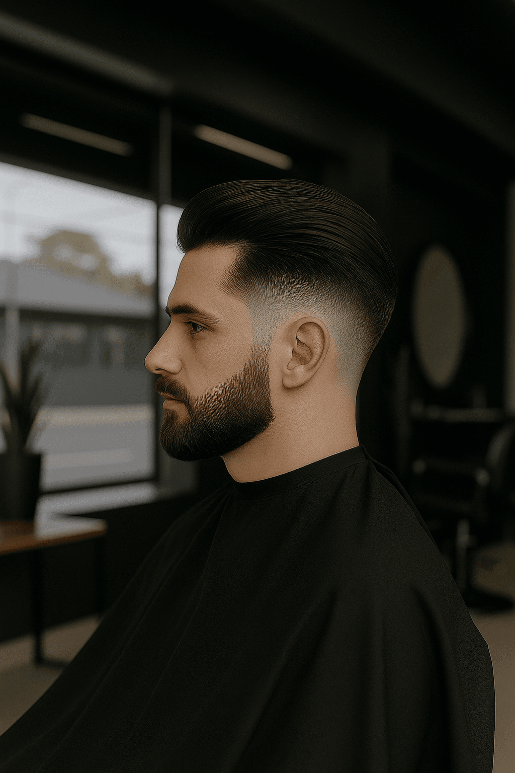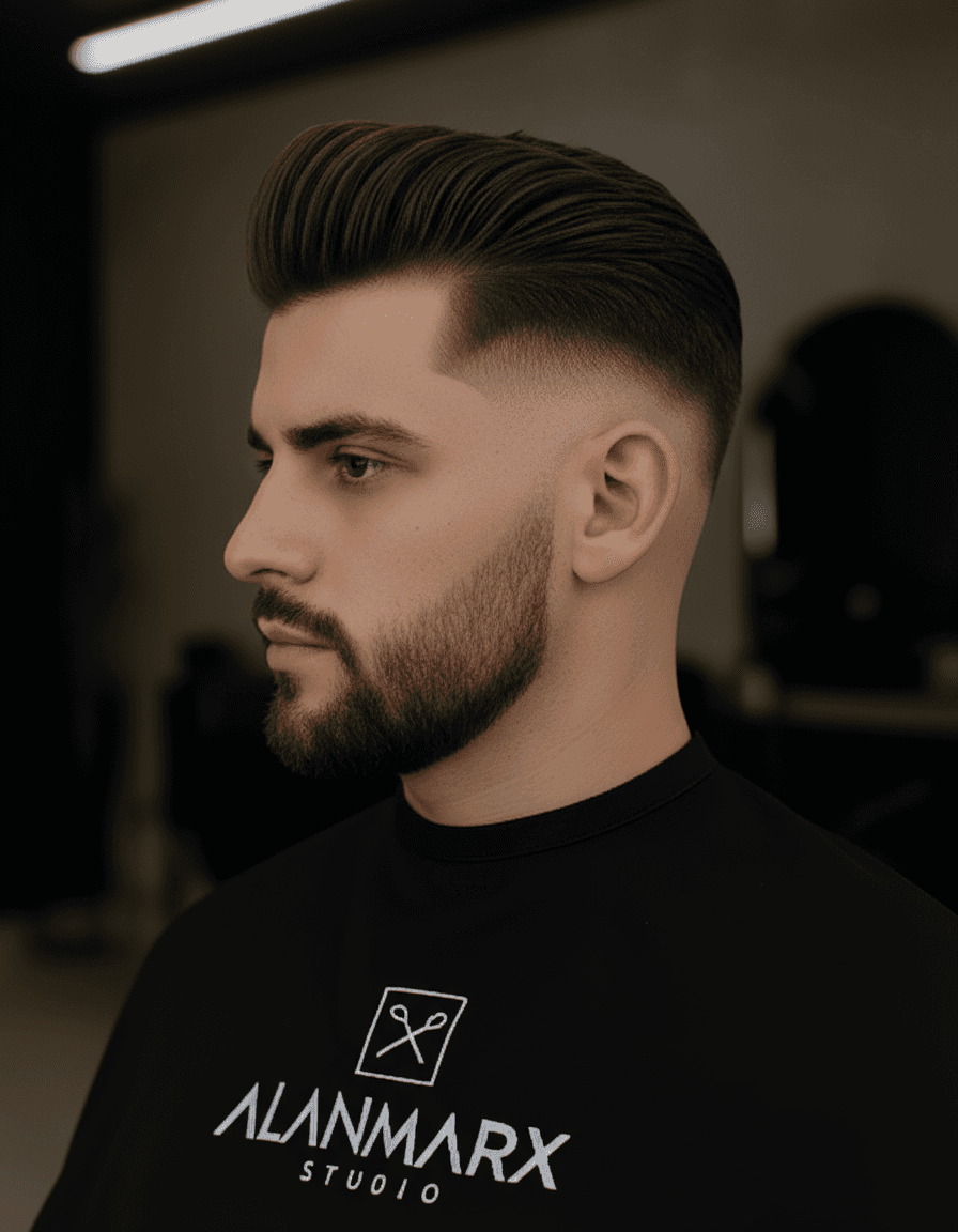 O low fade é um corte moderno que mantém a elegância. As laterais e a parte de trás são raspadas em degradê baixo, criando um contraste sutil que valoriza o topo mais cheio e alinhado. Esse estilo é perfeito para quem busca um visual limpo, versátil e sofisticado, podendo ser usado tanto em ambientes profissionais quanto casuais.